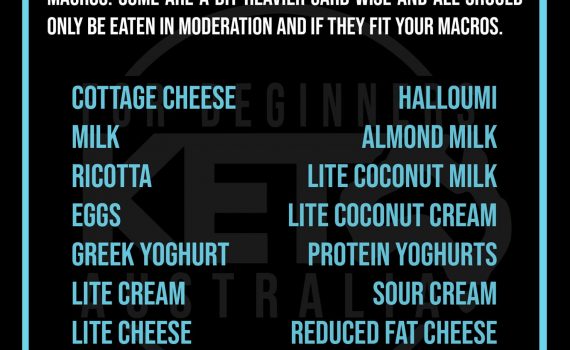 Here are some lower fat dairy options. Being lower fat, they’re not as calorie dense and may be easier to work into your macros. You can download and save this image by right clicking on it, and selecting ‘Save as’…